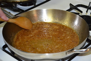 While the filets are finishing in the oven, return to the pan we seared them in. You will notice lots of tasty little brown bits on the bottom of the pan. This is all great flavor!!